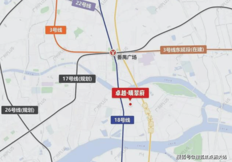 地铁距离番禺广场站直线距离2公里,有3号线、18号线、22号线交汇,可以贯穿全城。另有规划的17号线桥南站将进一步提升交通便利性。