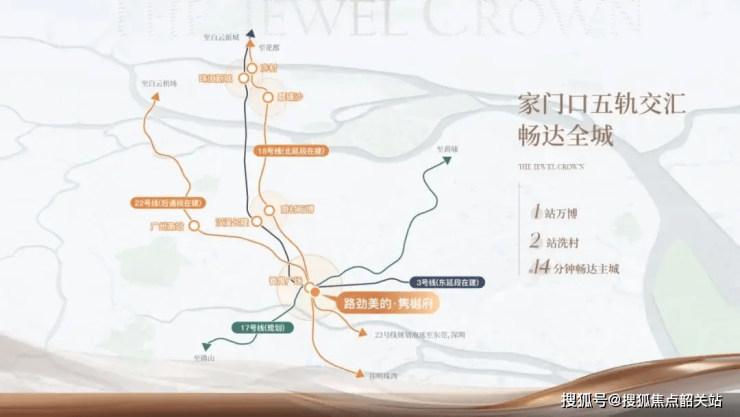 地铁:3号线(番禺广场站)、18号线(快线3站到冼村)、22号线(30分钟到南站)三轨交汇,直线距离地铁站仅300米(实测步行5分钟);