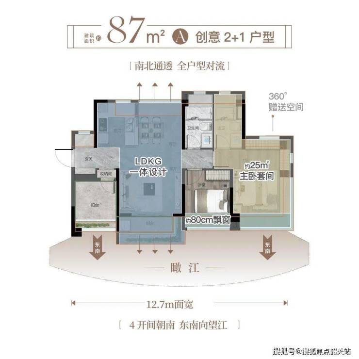 建面约89㎡三房:四开间朝南,主卧带270°转角飘窗,使用率超95%(同等面积,周边竞品使用率仅82%);