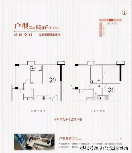 项目主推 45-95㎡复式二至四房,全系 4.5 米层高,实现 “一层价格,两层使用”: