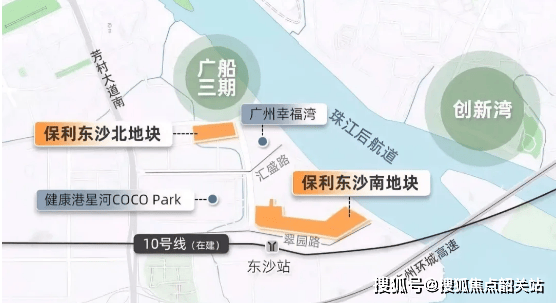 项目位于荔湾区广船新城板块(广州国际医药港中心地段),地处白鹅潭 CBD 核心区域,周边规划有广州第一座万象城、滨江太古商业等高端商业配套,未来将成为广州顶级商业带。交通上,距在建地铁 10 号线东沙站仅 600 米,10 号线串联天河、白云、越秀、荔湾、海珠五区,连接广州火车站、广州东站等枢纽,未来地铁出行便捷;同时临近 11 号线、22 号线(均在建),形成三地铁交汇格局。自驾可通过东新高速、环城高速,或经芳村大道南、东沙大道快速接驳全城,5 分钟上高速,30 分钟直达珠江新城。周边商业有已开业的健康港星河 COCO Park(12 万㎡),医疗有广东省中医院芳村分院、广钢新城医院等三甲医院,生活配套成熟且高端。
