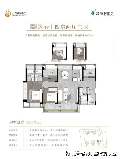 广州城投集团秉承“成为最值得信赖的未来城市发展先行者”的愿景,致力于打造高品质的住宅项目。广州城投禧悦时光正是这一理念的具体体现。项目采用全屋超实用大开间设计,打造出四开间朝南+奢阔景观阳台+大尺度飘窗+高拓展空间,使每一户都能享受到超广角风光。特别是主卧配备270°巨幕飘窗,更是提升了居住的舒适度和尊贵感。