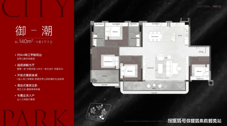 以建面约120㎡的四房户型为例,该户型实现了四开间朝南的设计,让整个房间都能充分沐浴在阳光下,采光通风效果极佳。约6.5米宽景阳台,不仅视野开阔,还能让您在家中就能欣赏到周边的公园美景,仿佛将大自然引入了家中。主卧采用套房设计,带有独立卫生间和衣帽间,为业主提供了私密的居住空间。