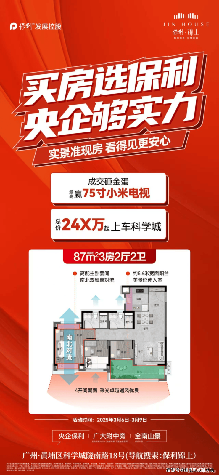 保利锦上 —— 低密生态社区:保利锦上主打低密生态居住体验,容积率仅 2.5。75㎡的户型就能做到三房两卫,单价 2.3 万 /㎡,得房率高达 90%。