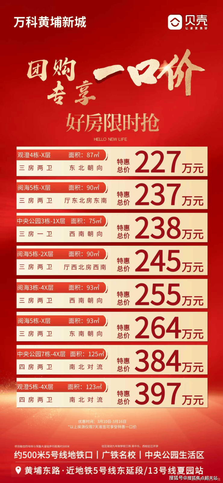万科黄埔新城 ——200 万级全能社区:万科黄埔新城以其超高的性价比成为众多刚需购房者关注的焦点。93㎡的精装三房,总价 225 万起,价格十分亲民。