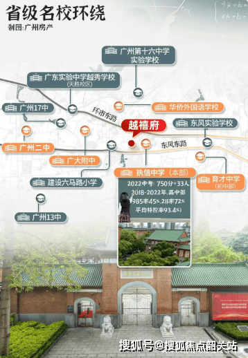 『保隆越禧府』所属华乐街道,参考往年招生范围,项目大概率会被划分至建设六马路小学的招生范围。根据2023年小升初报读指南,项目对口10所中学,其中6所为省级名校,包括执信中学本部(高中重本率99%,600分以上86%)、育才中学、华侨外国语学校、第二中学、广大附中、十六中学等。项目西侧即为执信中学,教育资源十分丰富。