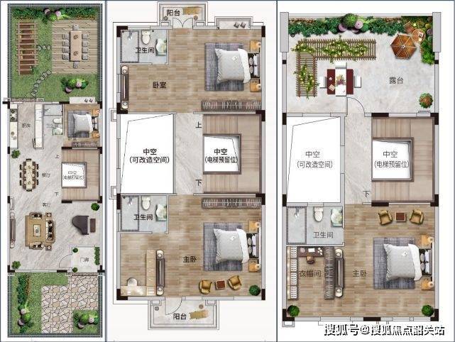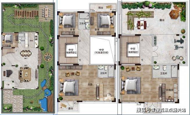 四联二层半,建筑基底卙地约116㎡,7.9米开间客厅面积:74㎡,三主套设计带约200㎡超大花园露台+中空赠送面积约72㎡245㎡联排别墅