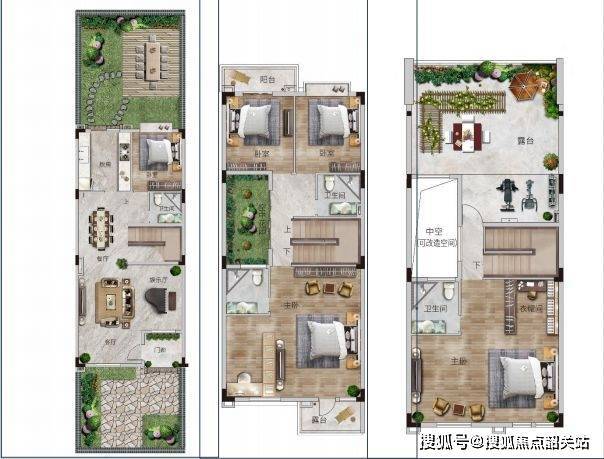 四联二层半,建筑基底卙地约100㎡,6.6米开间客厅面积:65㎡,双主套设计带约67-125㎡超大花园露台+中空赠送面积约50㎡284㎡联排别墅