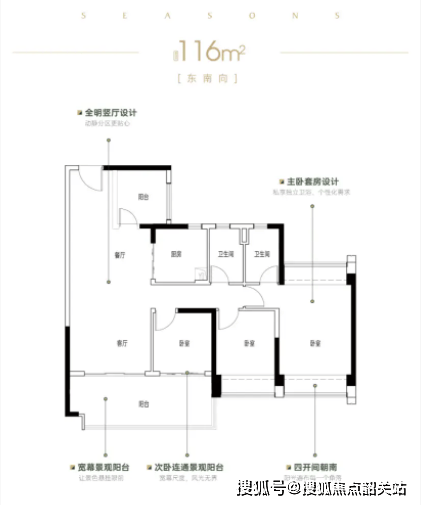 随着家庭成员的增加,四房成为了二胎家庭或三代同堂家庭的刚需。新世界四季山水的115-116㎡四房户型,同样位于2号楼,采用了时下流行的LDK(客餐厨)一体化设计。这种设计打破了传统空间的隔阂,增强了家庭成员之间的互动,让客厅、餐厅、厨房成为一个宽敞明亮的社交中心。双阳台布局(生活阳台+景观阳台)兼顾了实用性与观赏性,既方便晾晒衣物,又能欣赏窗外美景。主卧套房带独立卫浴,私密性强,为主人提供了尊贵的居住体验。总价361万起,中楼层390-400万,这个价格区间在同类产品中极具竞争力,完美适配追求品质生活的改善型家庭。