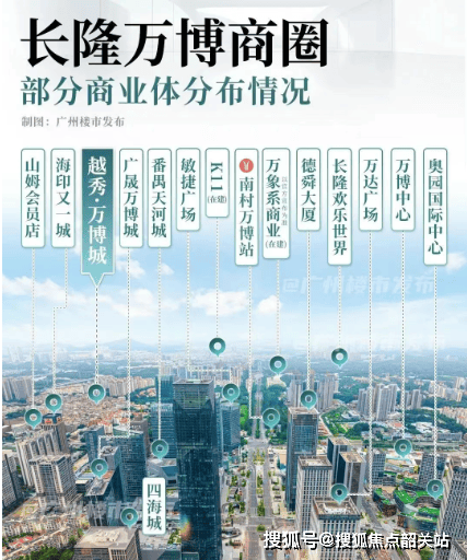 外部商圈:项目对面是 5A 级景区长隆度假区,周边万博 CBD 超 27,000 家行业头部企业聚集,商业氛围浓厚。四海城、万象系等 14 座高端商业体环绕,1500 多家商家汇聚,满足各种消费需求。