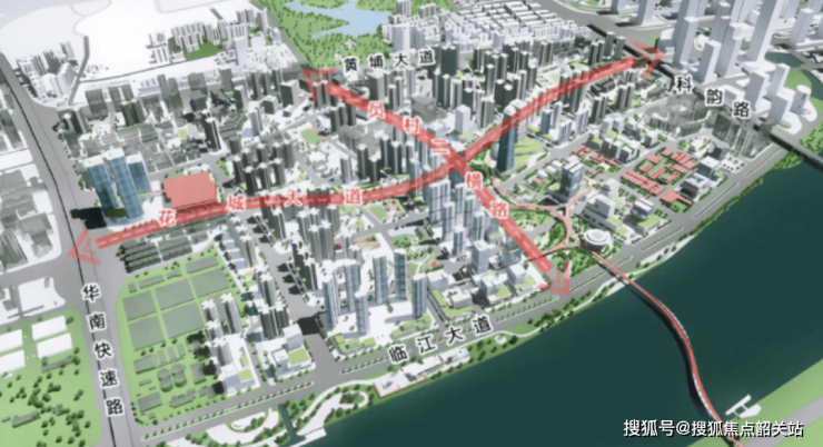 首先,在道路交通方面,项目靠近临江大道与黄埔大道等重要城市主干道,这些道路可以快速连接珠江新城、天河北以及琶洲等核心区域。未来临江大道全线贯通之后,将进一步加强珠江新城与金融城之间的联系,使两个核心商务区之间的通勤更加高效。