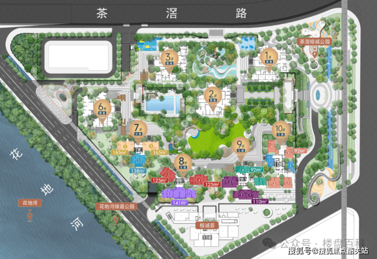 休闲——直距江面约30米,坐拥约8.44km一线花地河无界视野;以及有花地河绿道公园、茶滘榕诚公园、铁路文化公园(在建,一期已开放)和华南植物园科普园(规划)等四大公园环绕。
