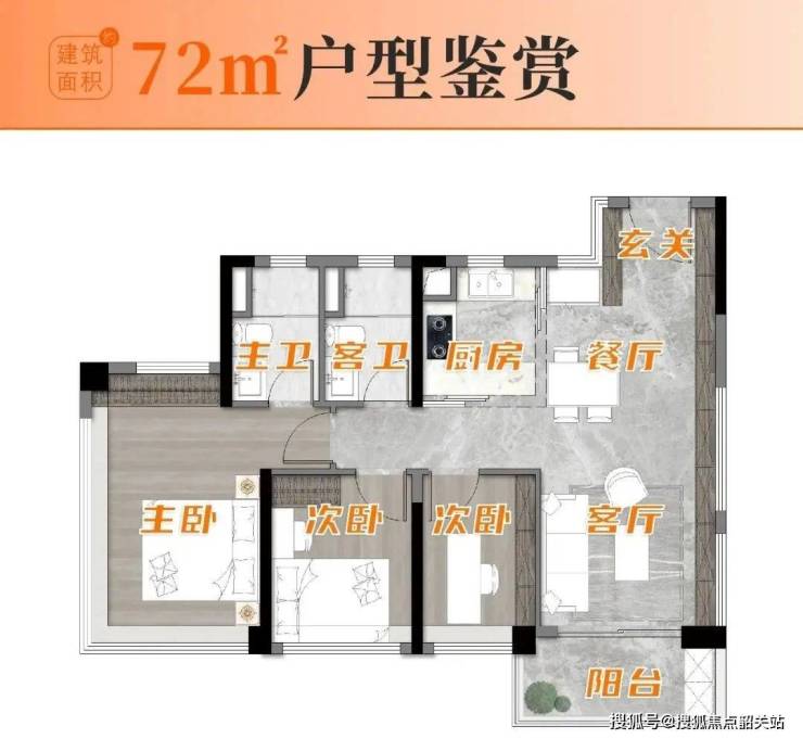建面约85平户型,升级了双面宽的阳台,各个功能空间都做了“放大”,买家可以一步到位。
