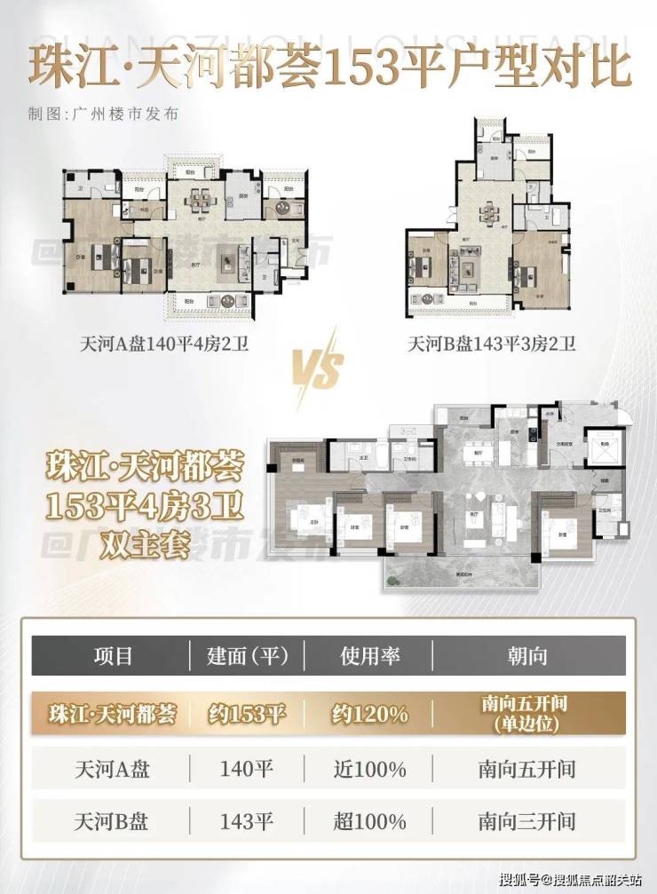 建面约153平这个户型是珠江·天河都荟最大的户型,也是匹配天河精英的顶配生活舱。
