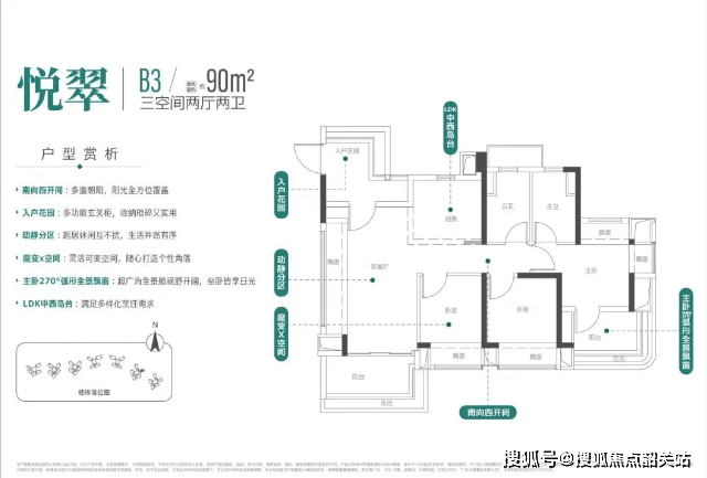 中交天翠首推的是6号楼,拥有3梯5户的设计,共48层高,当前推出90平方米和113平方米两种户型,即将加推出7栋的79平方米东南向户型。得房率高达110%,层高3米,架空层设置在第16和32层。项目外立面采用大面积玻璃加合金材质,转角处紧扣“圆弧美学”,整体设计明亮通透,流畅有力。