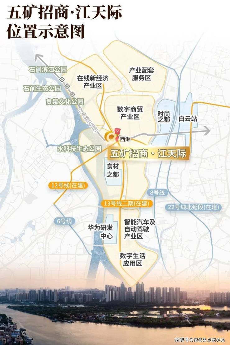 五矿招商江天际位于广州市白云区广海路的槎头站上盖,是一个集居住、教育、商业、轨道于一体的大型TOD(Transit-Oriented Development)项目。这个项目以其独特的一线江景和三线交汇的便捷交通优势吸引了众多购房者的关注。作为广州中心五区中较为经济实惠的江景盘之一,它以3字头的价格提供了一系列高品质住宅选择。