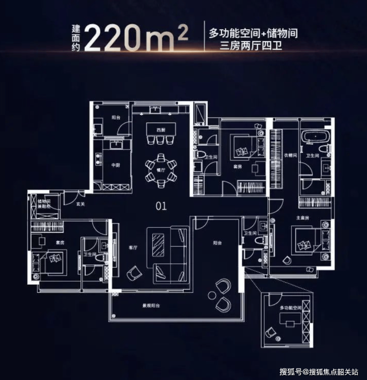 项目主打142-265㎡海景大宅,户型设计注重空间利用效率与居住舒适度的平衡,所有住宅均采用南北对流设计,最大化利用一线南向宽阔海景资源。此外,项目还包括甲级写字楼和购物中心两种业态,自持经营的商业部分将提供一站式购物服务体验,进一步提升区域内的生活便利性。