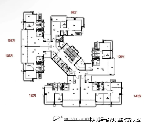 143㎡户型:南向宽景4开间设计,约36.5米环幕采光面,270°环幕瞰景主卧,多元化功能阳台。