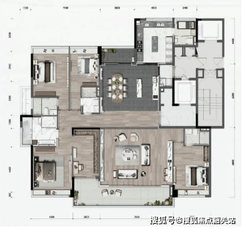 纯粹业主圈层大平层:项目提供的住宅面积在200至350平方米之间,采用三梯两户设计,确保每户都能享受专梯专户的尊贵体验。部分户型特别设置了双阳台观景设计,开阔的客餐厅、中西双厨配置以及3.5米的PLUS层高,将生活尺度大大拉满。