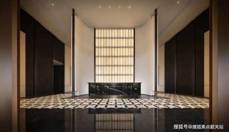 近12米高阔尺度的照壁与双层归家大堂,打造极具标志性社区界面,更添归家的奢阔仪式。
