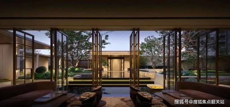 中央水院边界嵌入下沉式会客区,三面自然围合,宛如坐在珠江岸边般惬意。