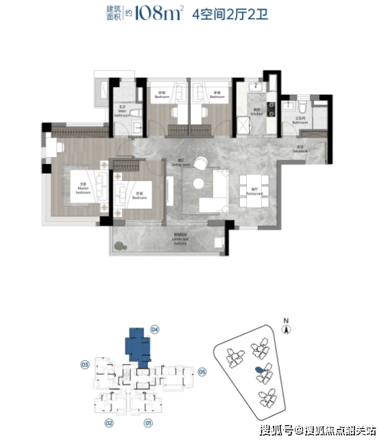 A2:项目在售户型为建面约88-108-120㎡三至四房,主打刚改群体,使用率高达120%,空间尺度感优越。