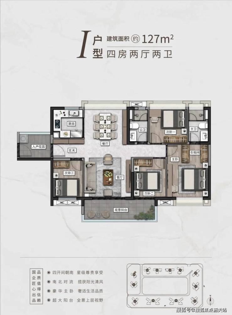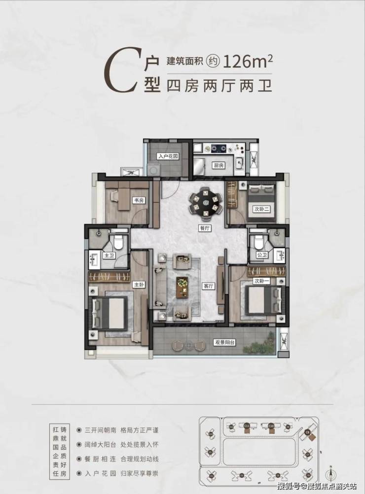 120平方米四房两卫:四开间朝南,南北双阳台设计,独立书房,适合大家庭居住。