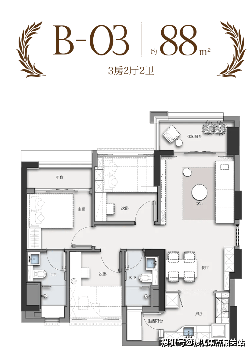 在售户型:89平方米三房两卫