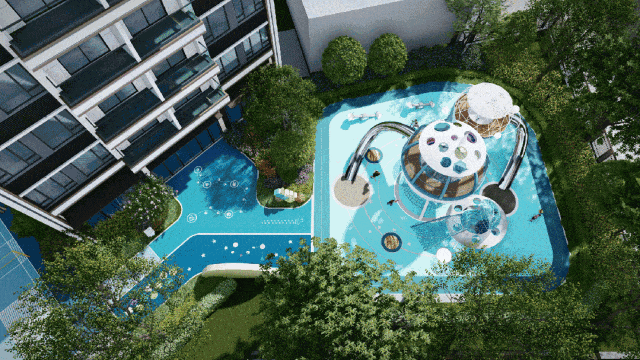 基于园林的大体量,项目打造星空泳池、亲子乐园、长辈休闲区、环跑步道、邻里会客厅等,让每位家庭成员都能找到自己的兴趣空间。