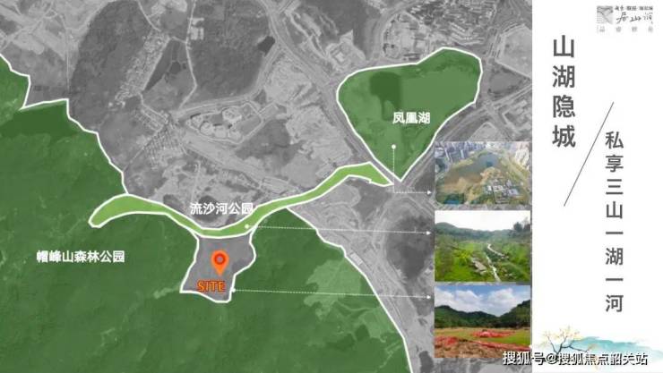 西南连帽峰山,北邻流沙河,望凤凰湖,容积率仅1.2,天生城心低密墅区,产品打造建筑面积约140/160/190㎡一梯一户环幕平墅,建面约155/175㎡山幕叠墅,约300席湖畔山居礼献时代大人物。