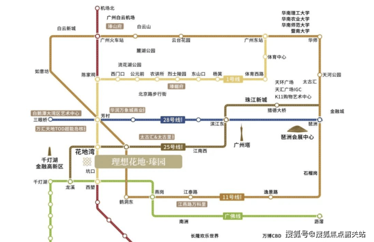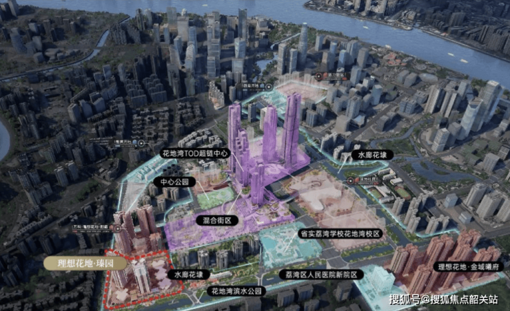 项目位于广州荔湾区核心板块——花地湾,地处白鹅潭CBD腹地,是未来城市西拓发展的战略支点。区域汇聚白鹅潭、聚龙组团与花地湾三大板块,共同构建珠江西岸CAZ(中央活力区)黄金三角。直线距离地铁1号线仅约800米,便捷接驳主城交通网络;周边更规划多达15条轨道线路交汇,形成覆盖大湾区的高效出行体系。此外,区域内产业、商业、文化资源密集,如立白中心、广药集团总部、广东美术馆“三馆合一”等地标建筑林立,全面提升片区能级与城市影响力。