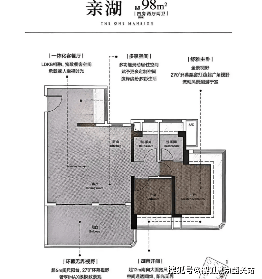 项目主打建面 98-148㎡全南向户型,使用率达 110%,户型设计灵活实用,覆盖刚需到改善需求。98㎡3+1 房两卫采用 LDKB 一体化设计,超 6 米景观阳台 + 四开间朝南,主卧带 270 度环幕飘窗;116㎡四房两卫设独立入户花园,横厅南北对流,约 7 米长阳台 + 三间南向卧室;120㎡四房两卫为 98㎡放大版,采光面达 15.9 米;132㎡四房两卫横厅设计,超 50㎡大方厅 + 约 5.8 米景观阳台,主卧 30㎡带独立衣帽间;148㎡4+1 房两卫有独立入户玄关,整体面宽 16 米,LDKB 一体化 + 6.6 米客厅开间,主卧同样 30㎡,满足多人口家庭居住需求。