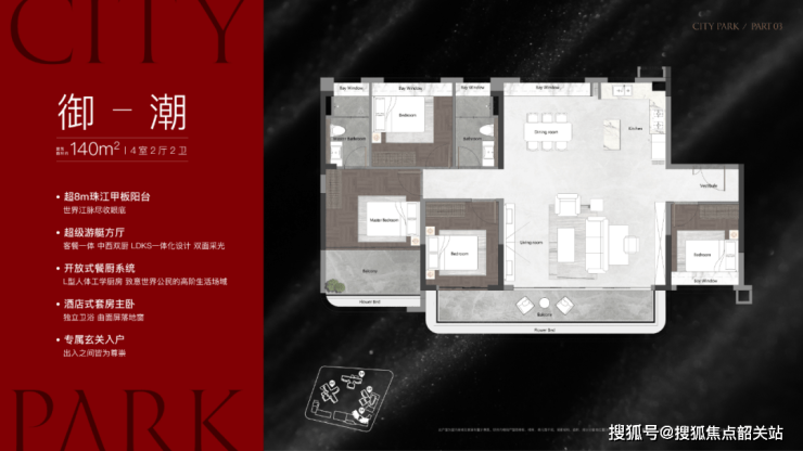 西派粤府推出的建筑面积约120平-140平四房产品,基本符合改善一族的需求。户型方面注重动静分离、干湿分区,减少面积浪费,提高实用性。尤其值得一提的是宽阔阳台的设计,恰好迎合了观江景的诉求,使得居家环境更加舒适宜人。