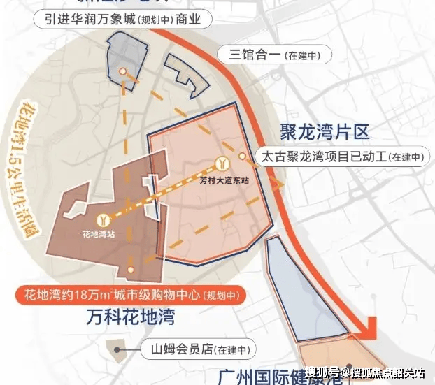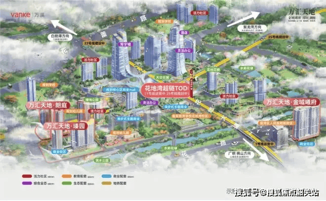 瑧园位于花地湾板块核心,与白鹅潭CBD(万象城)、广钢新城形成“三角联动”: 🚇地铁:11号线花地湾站300米(2026年已通车),22号线后通段(2027年)芳村站1公里; 🛍️商业:万象城(2026年6月开业)直线距离800米,太古里(规划)1.5公里; 🌳生态:花地河滨水公园(已开放)200米,社区内配建1.2万㎡空中花园。