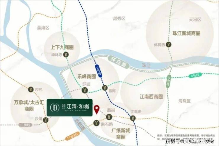江湾和樾的交通条件极为优越,已开通的地铁8号线沙园站距离项目仅800米,步行约10分钟即可到达;广佛线燕岗站约1.2公里,骑行更加方便。在建的地铁11号线南石头站距项目900米,通车后将极大提升跨区通勤效率。自驾方面,通过工业大道、昌岗中路可快速接入鹤洞大桥,20分钟左右即可抵达珠江新城,但早晚高峰主干道车流量较大,需注意可能的拥堵情况。此外,周边1公里内还有多个公交站点,覆盖荔湾、海珠等区域,为居民提供灵活的短途出行选择。