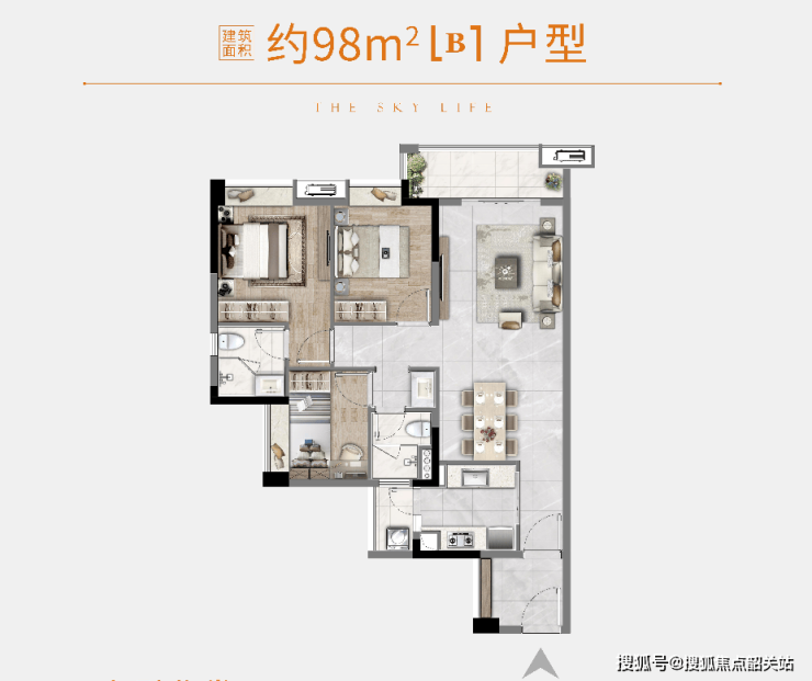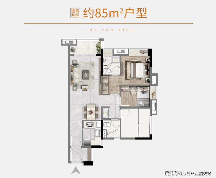 高拓展舒居:建面约79-115㎡,所有户型均带入户花园,南向阔景设计,享有270°视野景观。