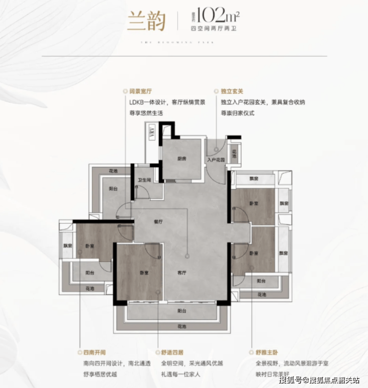 A1:102㎡、105㎡、116㎡、129㎡三至四房,户型南北通透,功能布局合理。