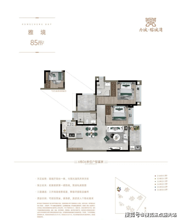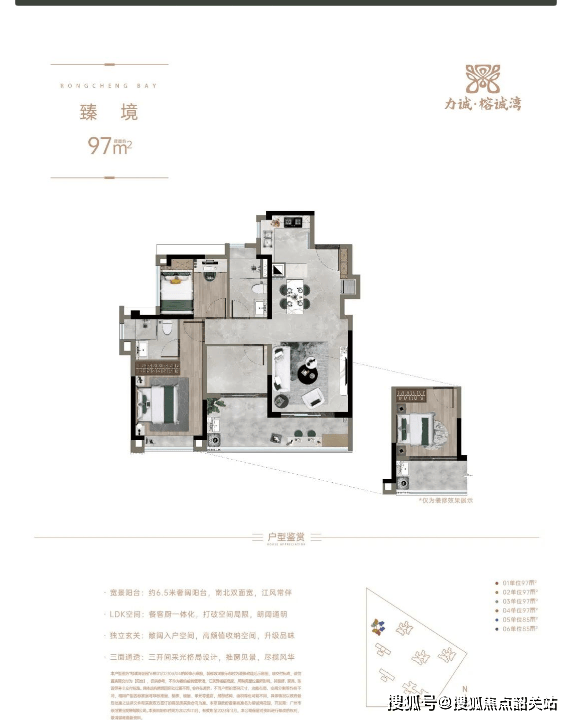 85㎡3房2厅2卫:市中心难得的瞰江小户型,三开间连续景观面,客厅阳台一体,引江景入室,让揽江生活不再是奢望。