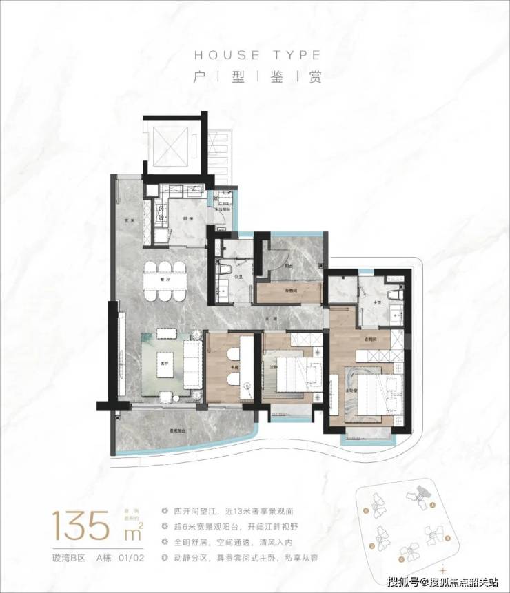 135-161㎡四至五房:一线江景,南北对流,满足多代同堂需求;