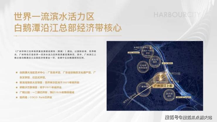 地段:白鹅潭核心,双地铁上盖,2公里江岸线;