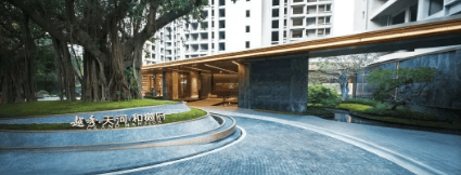 越秀天河和樾府在产品上实现产品之跃,集萃岭南文化与东方美学,以 “城市山林” 理念打造榕境八景,月洞门、云纹铺装等东方造园技法融入其中,与自然景观和谐统一。