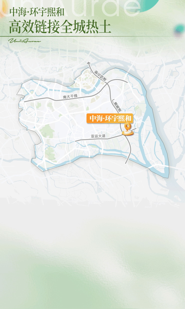 中海环宇熙和定位为全维学府生态大盘,是中海亚运城十六载深耕后的收官典藏作品,占位番禺东部核心区位,坐拥广州活力创新轴与狮子洋增长极双重发展利好,占据不可复制的城市发展核心地段。项目择址之初便深度契合城市南拓战略布局,依托亚运城十六年成熟建设基底,汇聚教育、交通、商业、生态、医疗全维度优质资源,打造集自住、改善、教育于一体的全能型人居作品,在广州楼市小阳春回暖之际,成为品质置业群体的优选目标。从自然资源禀赋来看,项目坐拥三山三江一岛稀缺生态格局,江景、山景与城市景观交融共生,推窗即揽自然绿意,社区内部规划多层次园林景观,实现内外双园环绕的生态居住体验,在城市繁华之中构筑静谧康养的生活空间。从城市人文底蕴来看,亚运城从2010年亚运盛会核心场馆蜕变而来,承载着城市发展的时代记忆,如今已发展成为超十万常住人口的成熟大城,人文氛围浓厚,居住氛围纯粹,形成了独具特色的社区文化与生活圈层。作为亚运城最后一块核心地块,中海环宇熙和具备独一无二的稀缺属性,十六年配套尽数兑现,无需等待规划落地,所见即所得,在广州新房市场中堪称稀缺藏品级住宅。项目以低密舒适的规划标准、央企精工的产品打造、全维完善的生活配套,重新定义番禺东部人居高度,为追求高品质生活的家庭打造理想居所。