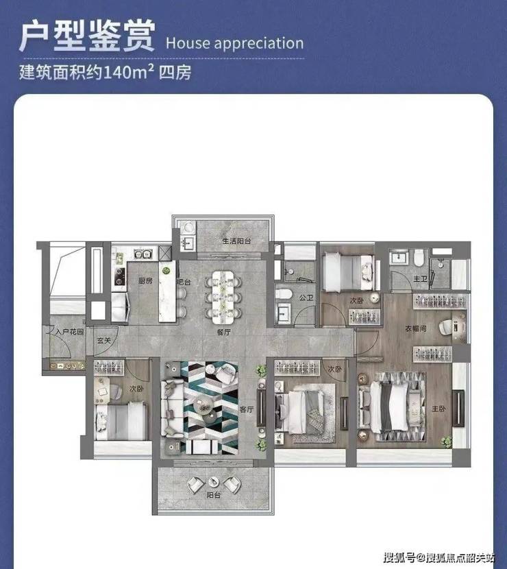约138㎡超高层湖山IMAX景观四房户型,超高层+多面宽+270℃观景阳台,带来IMAX级采光体验,湖山风景和南向天际线视野尽在眼底;双阳台南北对流,吸纳更多阳光与鲜氧;超大主卧带衣帽间,尊贵感油然而生。