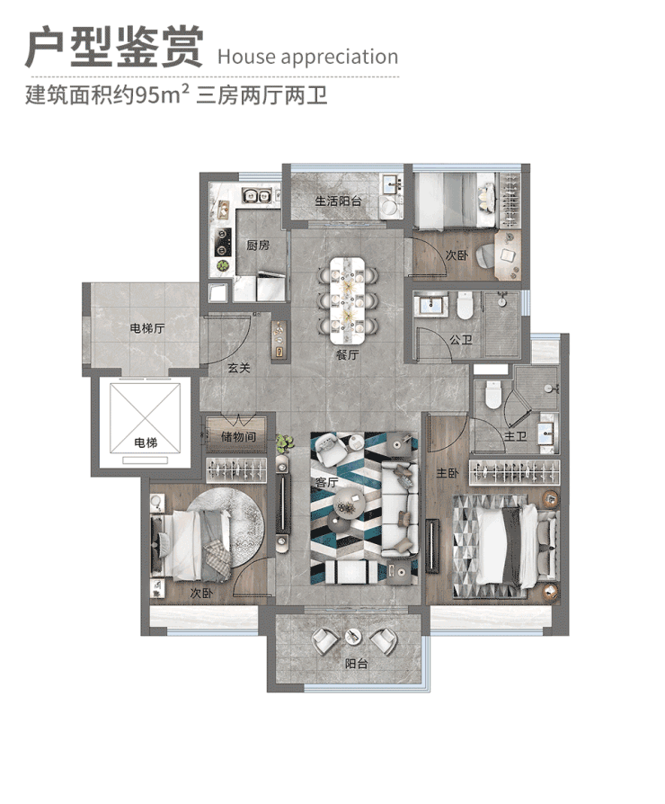 以越秀天悦金沙95㎡户型为例: