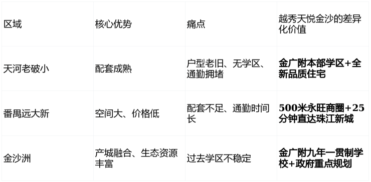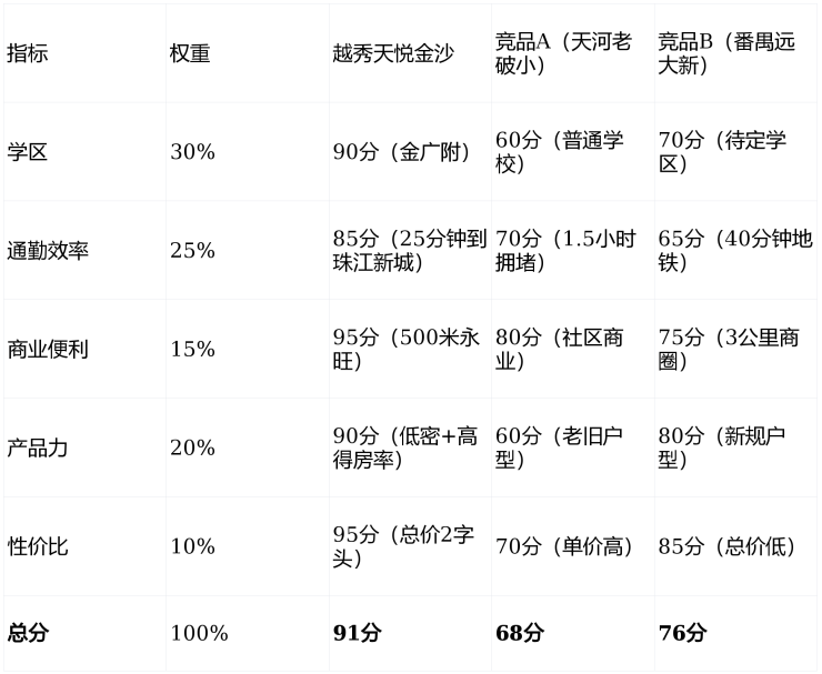 全能型住宅价值评分表:越秀天悦金沙VS竞品