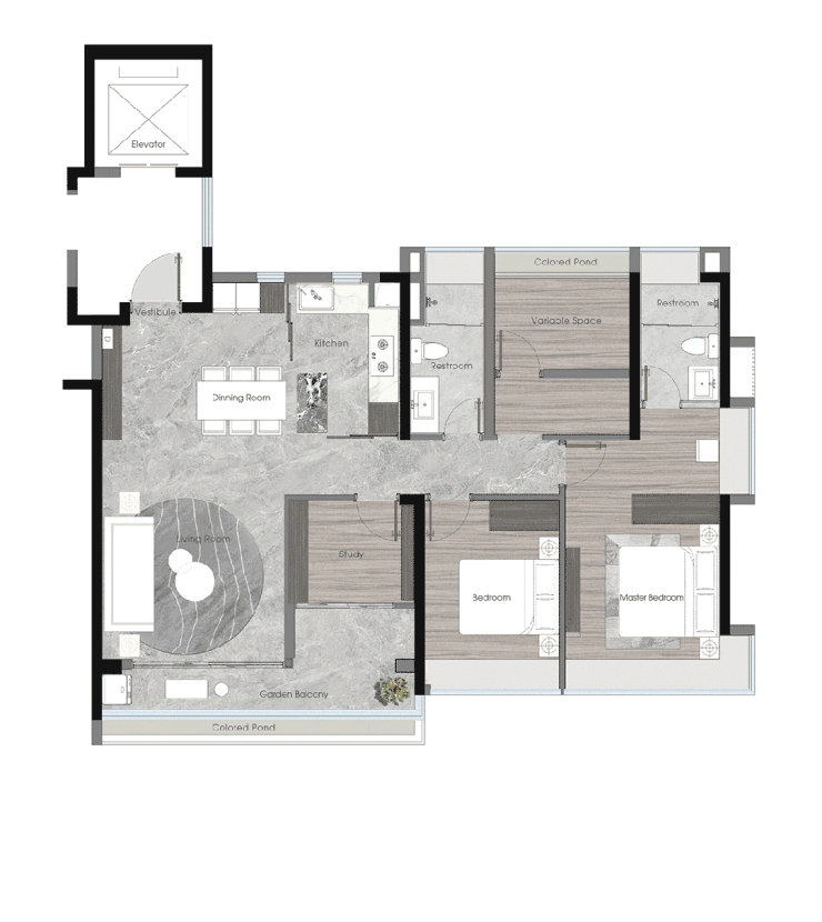 依托于低容积率和宽楼距的优势,保利锦上印打造了市中心少有的大型立体园林。园林设计邀请了国际知名的景观设计团队,融合了岭南园林的精髓和现代景观的理念,创造出一个个移步换景的精美画面。