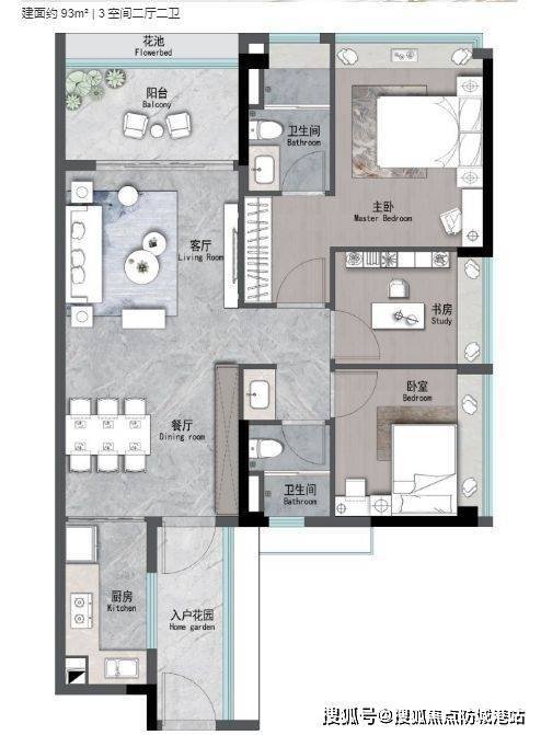 93㎡三房:总价511.5万起,U型厨房操作面3.6米,适合年轻家庭。