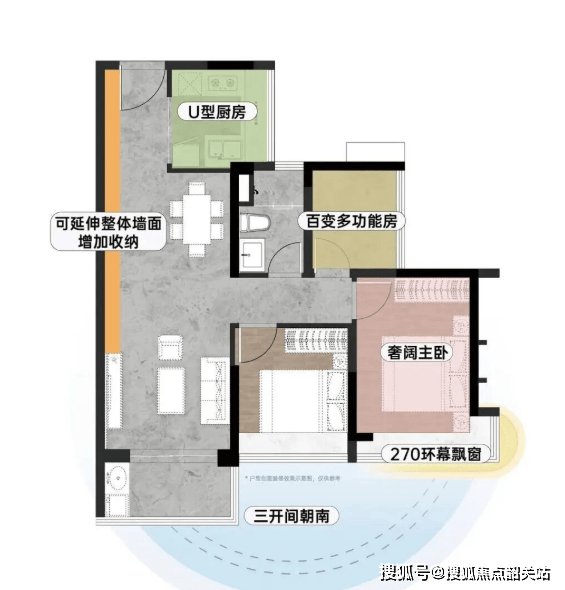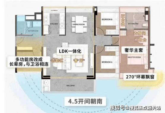 约80㎡南向江景小户:罕见南向9米采光面,270°景观主卧,6m³整墙收纳,小户型亦享大格局;