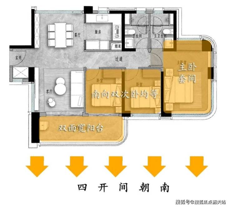 南向户型推窗即揽330米社区中轴园林,130米楼间距打造无界观景画框,绿意盎然,微风送香;