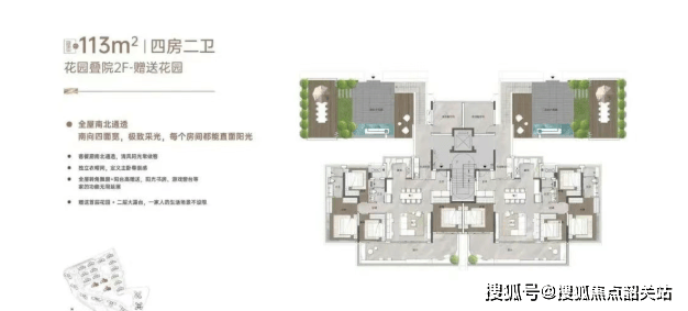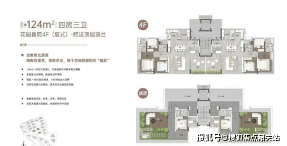 “玥境”系列:主打112-130㎡低密花园叠院,1F、2F户型赠送私属花园(最高达260㎡),3F赠送超大景观露台,4F采用复式设计,顶层天台与可改造空间合计超百平米,总价区间约490万至620万,性价比极高。